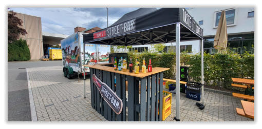 Palettenbar und Pavillon. Vor Ort benötigen wir nur den